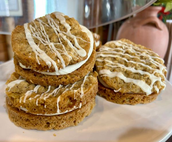 8 Jumbo yeast buns loaded with carrots, cinnamon & spring spices rolled up tightly. Topped with icing
