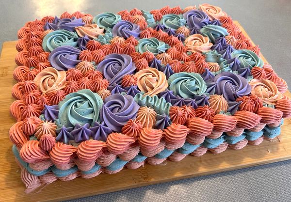 2 Layer 18 x 24 cake with frosting. Feeds 40-45 People